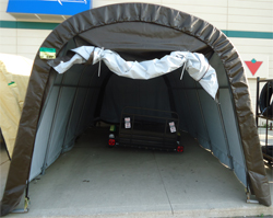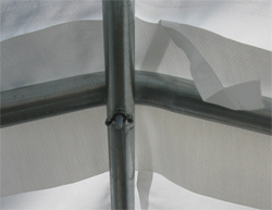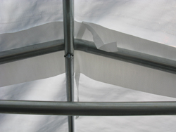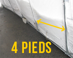Arches aux 4 pieds pour structure d'abri simple:Certains fabricants, comme Logic Shelter, placent les arches aux 5 pieds. Ainsi, un abri 11' X 20' aura seulement 5 arches comparativement à 6 arches pour un modèle de même dimension. L'abri avec arches aux 4 pieds est donc plus robuste, résiste mieux aux intempéries et à l'accumulation de neige ou d'eau. |